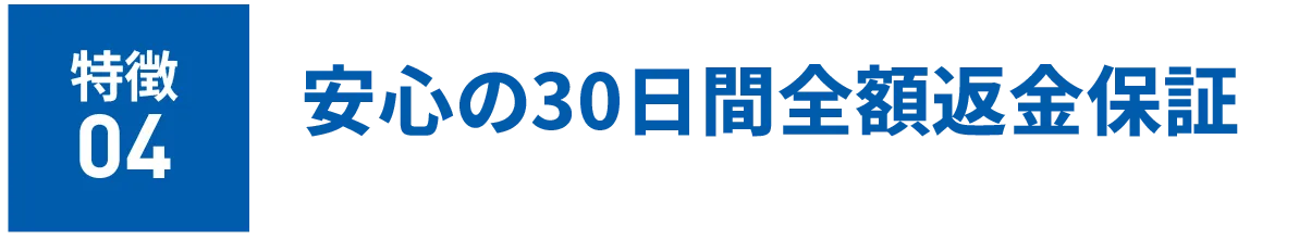 お客様に心からご満足いただけるサービスを提供するために、30日間の全額返金保証を設けています。